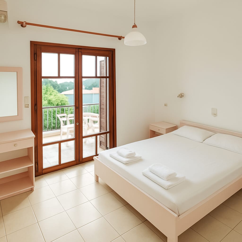 In all of the apartments there are provided: a kitchenette (sink, fridge, two stoves and closets with glasses-dishes etc), tv, air-conditioning, safety-box. All of the apartments enjoy great balconies, some of which offer sea views, view to the olive-oil tree fields and the Bay of Chania. Especially our 2nd floor apartment number 7, offers panoramic view and beutiful sunsets. Since 2014 we offer free wi-fi access to all our guests.